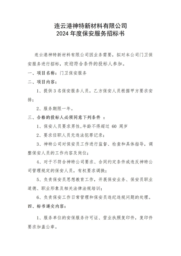 神特公司2024年保安服務(wù)邀請招標(biāo)公告